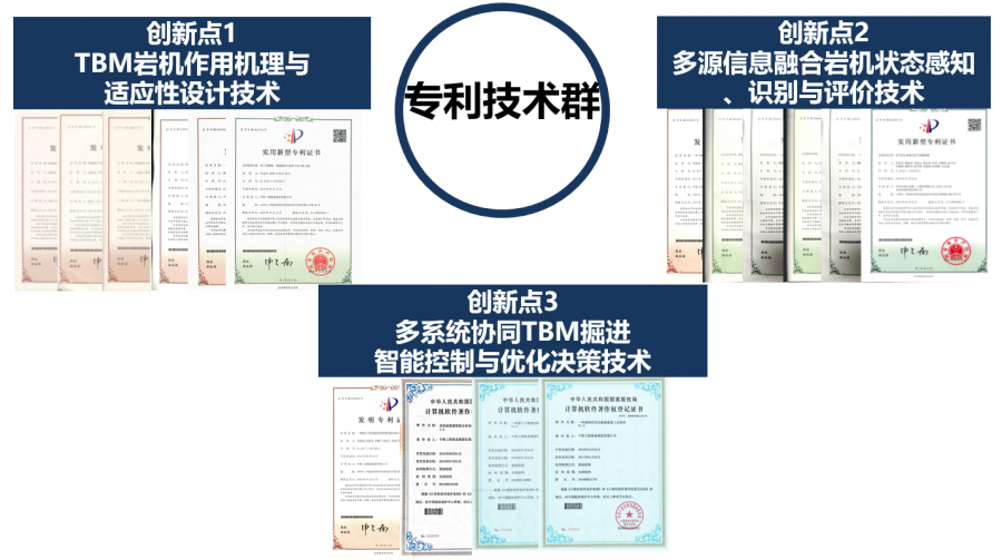 项目开展期间,项目团队共发表SCI/EI文章130多篇,申请发明专利70多项,其中包含4项国际专利,相关研究成果纳入到国家和行业标准2项,形成了完整的TBM智能掘进技术体系,实现了智能辅助掘进的阶段性目标,提升了行业TBM施工技术信息化、智能化水平。