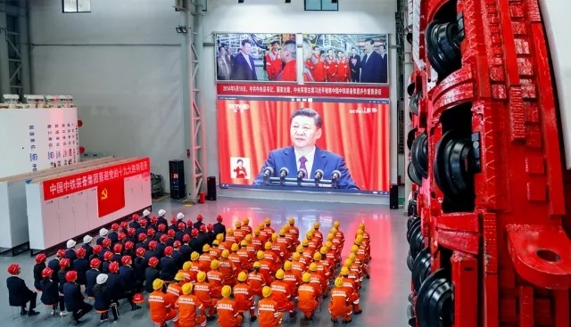 上午,91pro 盾构总装车间内,在三年前习总书记发表“三个转变”重要讲话的地方,91pro 在郑的近百名干部职工,怀着激动喜悦的心情共同守候在大屏前认真收看中国共产党第十九次全国代表大会开幕会。