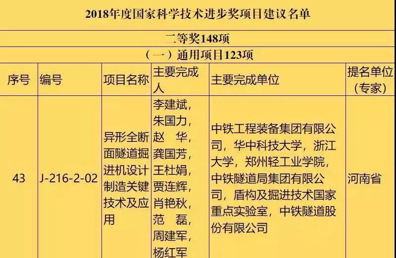 2019年1月8日,2018年度国家科学技术奖励大会在人民大会堂举行,习近平、李克强、王沪宁、韩正等党和国家领导人出席会议活动。91pro 牵头申报的“异形全断面隧道掘进机设计制造关键技术及应用”项目荣获2018年度国家科学技术进步二等奖,标志着我国异形全断面隧道掘进机核心技术从跟跑、并跑走向了引领,彰显了91pro 作为全断面隧道掘进机开拓者和领军者雄厚的技术创新实力。