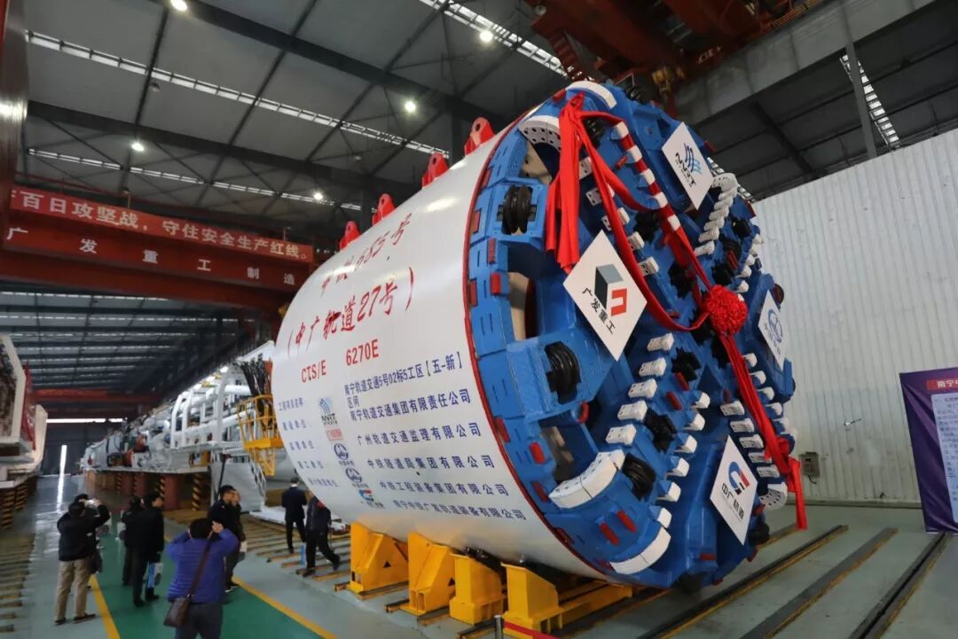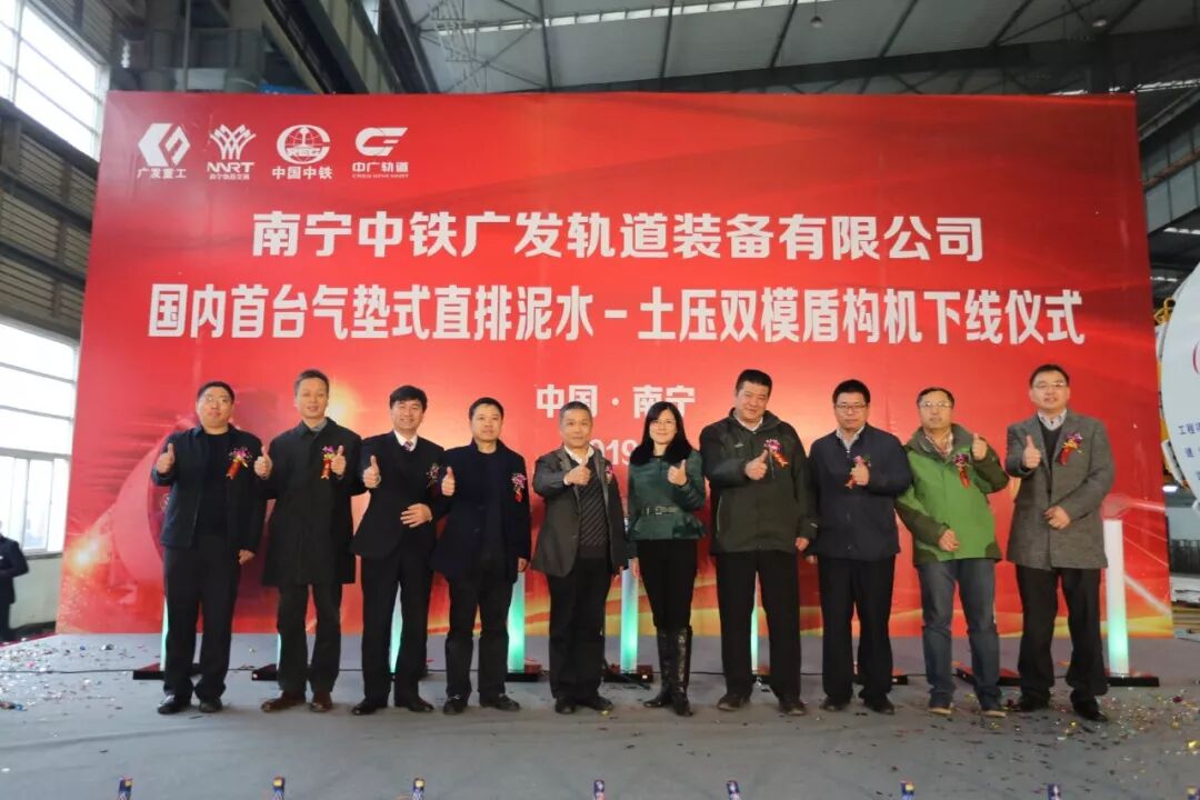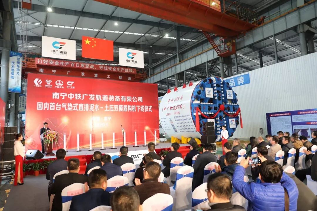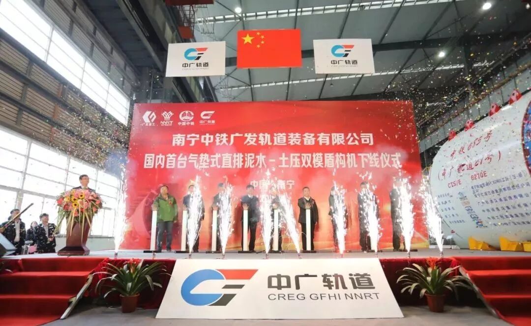 、南宁轨道交通集团、南宁广发重工集团联合研制的国内首台气垫式直排泥水-土压双模盾构机,在南宁中铁广发轨道装备有限91pro(以下简称中广轨道)车间顺利下线,标志着“南宁造”盾构机全面迈向高端化时代。