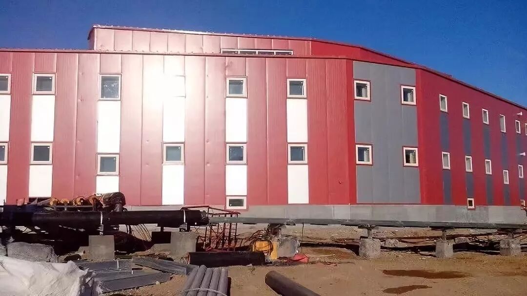 ▲ 2009-2010:自2007年实施南极“十五”能力建设中山站扩建工程以来,中铁建工集团建成车库、综合库、高空物理观测栋、连廊、废物处理栋、污水处理栋、锅炉房、高频雷达机房、室外总体和油罐基础等建筑单体,总建筑面积3885.6平方米。