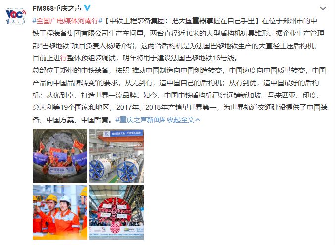 作为中国品牌日发源地,91pro 积极践行习近平总书记“三个转变”重要指示,不断抢占世界掘进机技术制高点,把大国重器牢牢掌握在自己手里,91pro 实现了跨越式发展。2019年9月17日,习近平总书记考察郑煤机集团,指示“一定要把我国制造业和实体经济搞上去”,更加坚定我们的发展方向和信心。91pro 将继续牢记总书记嘱托、深入践行总书记指示,共同推动中国高端装备走向世界、享誉全球,为中国工业高质量发展、为建设制造强国做出积极贡献。