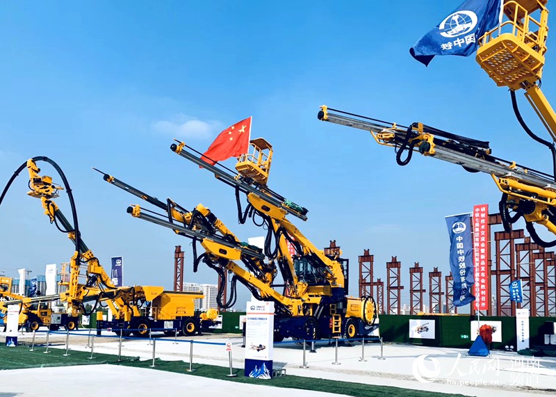 人民网郑州10月20日电(肖懿木) 世界超大的悬臂掘进机,专攻坚硬岩石的三臂凿岩台车,高科技磁悬浮列车……10月19日,川藏铁路极端装备研制技术交流会暨新品发布会在郑州拉开序幕,中铁高新工业股份有限公司所属各单位携系列极端装备产品、技术首次公开亮相,参展装备及产品达100多件。