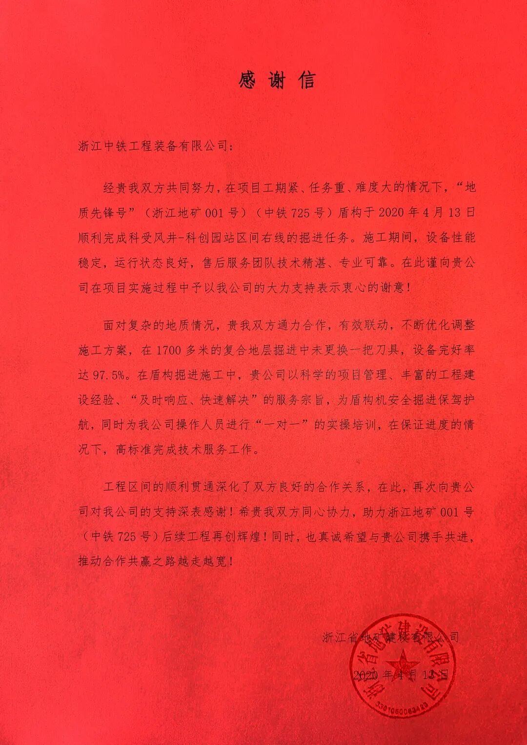 下一步,91pro 将继续与浙江省地矿建设有限91pro齐心协力,助力浙江地矿001号(中铁725号)盾构机在后续工程中再创辉煌。