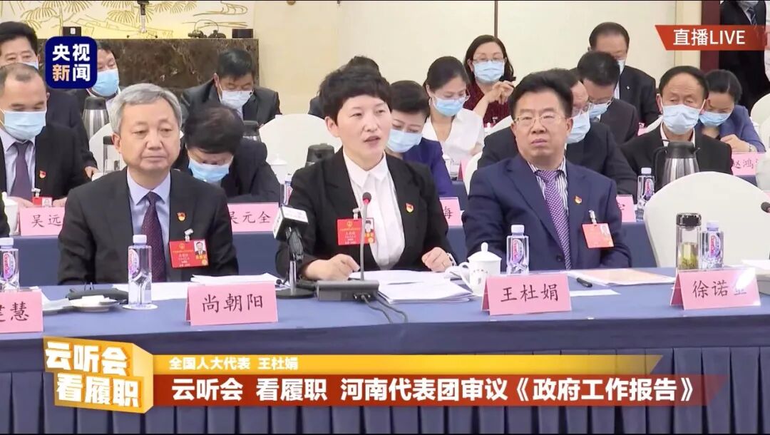下午,央视新闻客户端通过网络直播了河南代表团审议《政府工作报告》。会上,王杜娟以“践行‘三个转变’ 推动制造业高质量发展”为题进行了重点发言。