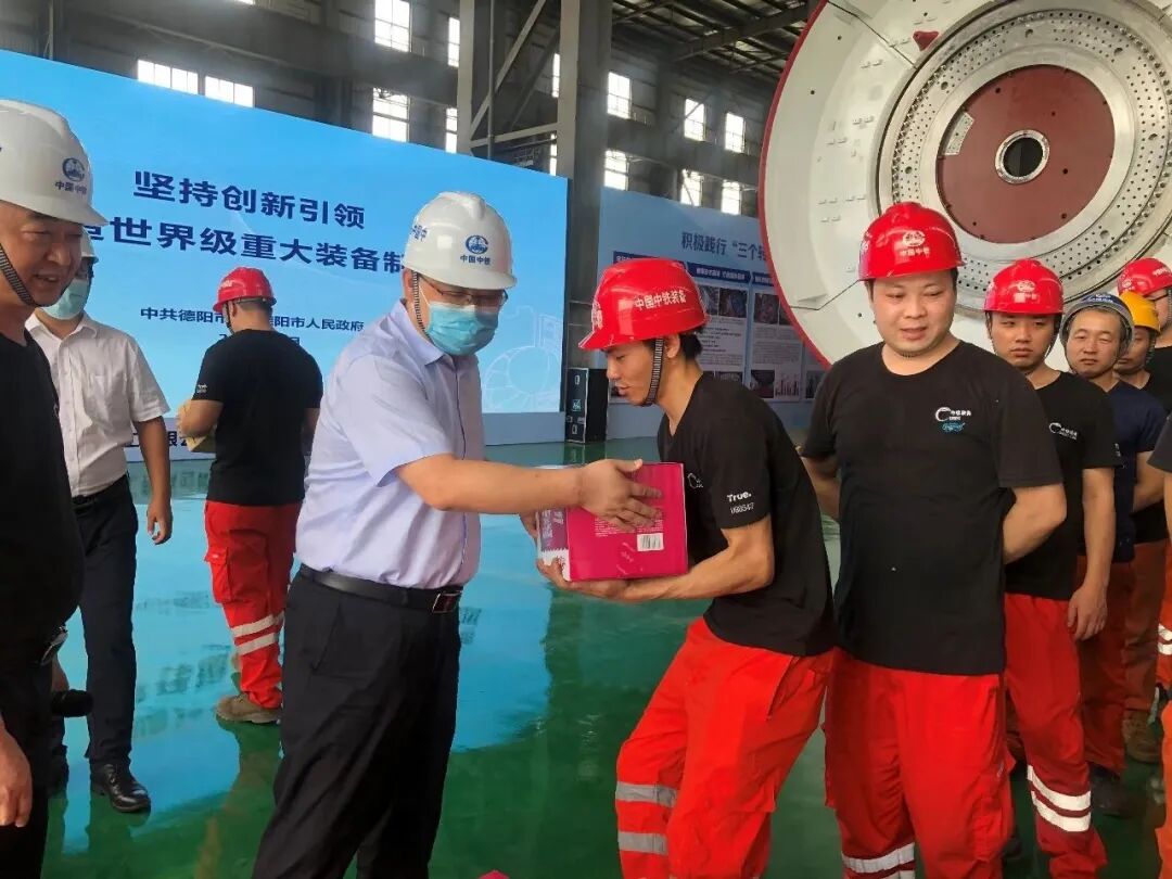 面对中铁888号拆机发运、中铁837号、中铁860号、中铁861号、中铁866号组装调试工作,德阳项目部及时组织各技术指导、外协单位负责人、班组长召开生产协调会,在人员严重不足的情况下及时调整人员配置,针对每一个项目实行定员定责,各司其职。工期紧、任务重,项目部开启白夜班模式,合理解决了车间桁车、场地不够用的问题,各项工作有序推进,既兼顾了中铁888号各个拆机发运节点,也保证了中铁837号、中铁860号按期交付客户。