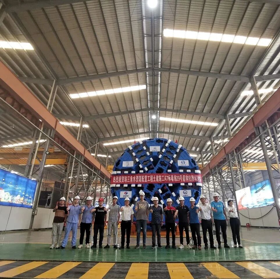 中铁884号盾构机开挖直径6.28米,整机长度约95米,该设备用于珠三角水资源配置工程土建施工A2标,区间里程2950米,主要穿越地层为泥质粉砂岩、砂岩及钙质粉砂岩等。肇庆基地中铁884号团队30余人,经过50余天的生产攻坚,保证了中铁884号顺利验收。