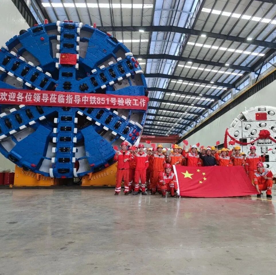 中铁926号盾构机开挖直径6.46米,整机长度约85米。该设备应用于郑州地铁3号线2期02标,主要穿越地层为粘质粉土、粉砂、砂质粉土层。洛阳基地中铁926号团队30余人,经过40余天的生产攻坚,并且十一期间坚守岗位,保证了中铁926号顺利验收。 中铁951号(粤海29号)盾构机开挖直径6.25米,整机长度约95米,最大推力3900T,水平转弯半径250m,该设备用于珠三角水资源配置工程土建施工A7标,主要穿越地层为弱风化泥质粉砂岩、砂砾岩、细砂岩等。肇庆基地中铁951号团队30余人,经过40余天的生产攻坚,保证了中铁951号(粤海29号)顺利如期验收下线。 中铁1000号土压平衡盾构机,开挖直径8.64m,整机长120m,总重量约1100t,设备应用于珠江三角洲水资源配置工程B4标。中铁1000号项目生产成员共20余人,期间生产项目组在组装场地受限的情况下,编制详细的工厂组装计划,合理安排结构件进厂先后顺序,各班组以白夜班制进行作业,全力突击进度,顺利通过客户验收。