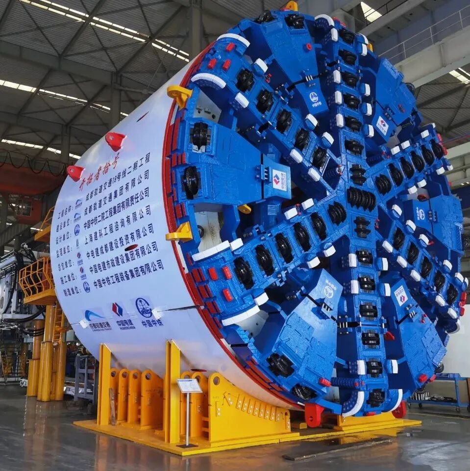 中铁876号盾构机开挖直径8.64米,整机长度约100米,11月13日通过验收,用于成都地铁19号线,主要穿越地层为中风化砂岩、中风化泥岩。