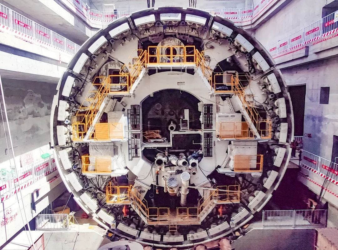 盾构机刀盘吊装下井是整个盾构机组装的关键环节。刀盘定位安装后,将开展管线联接、调试等后续工作,“妈湾号”始发的日期正一步步临近。