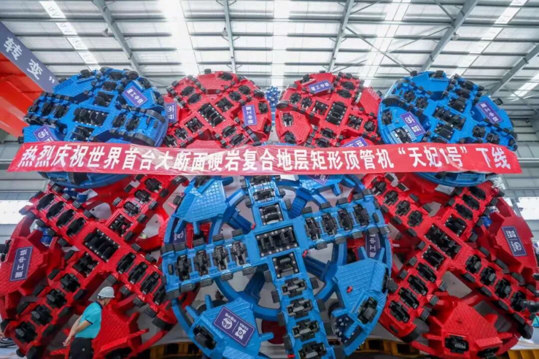 “天妃1号”的开挖断面宽12.6米,高7.65米,采用两层三前四后七刀盘组合布置形式,相邻刀盘的切削区域相互交叉,断面开挖覆盖率达100%,且具有更强大的破岩能力和掘进效能,能够在高强度硬岩地层、满足100MPa的岩石地层掘进,同时对地层扰动极少,确保了安全下穿杭深铁路。