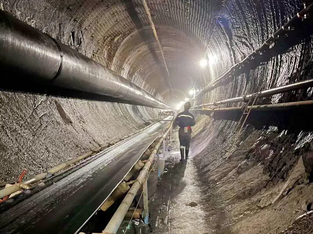 施工过程中,先后出现了比预想条件更为严峻的情况——大面积片帮、顶板岩石破碎垮落、巷道大量涌水的情况时有发生。得益于完善的系统配置与能力冗余,在此种不利条件下,“贵能二号”依然取得了始发首月进尺302.9米、次月进尺突破410米、单日最高进尺29.9米的优异成绩。