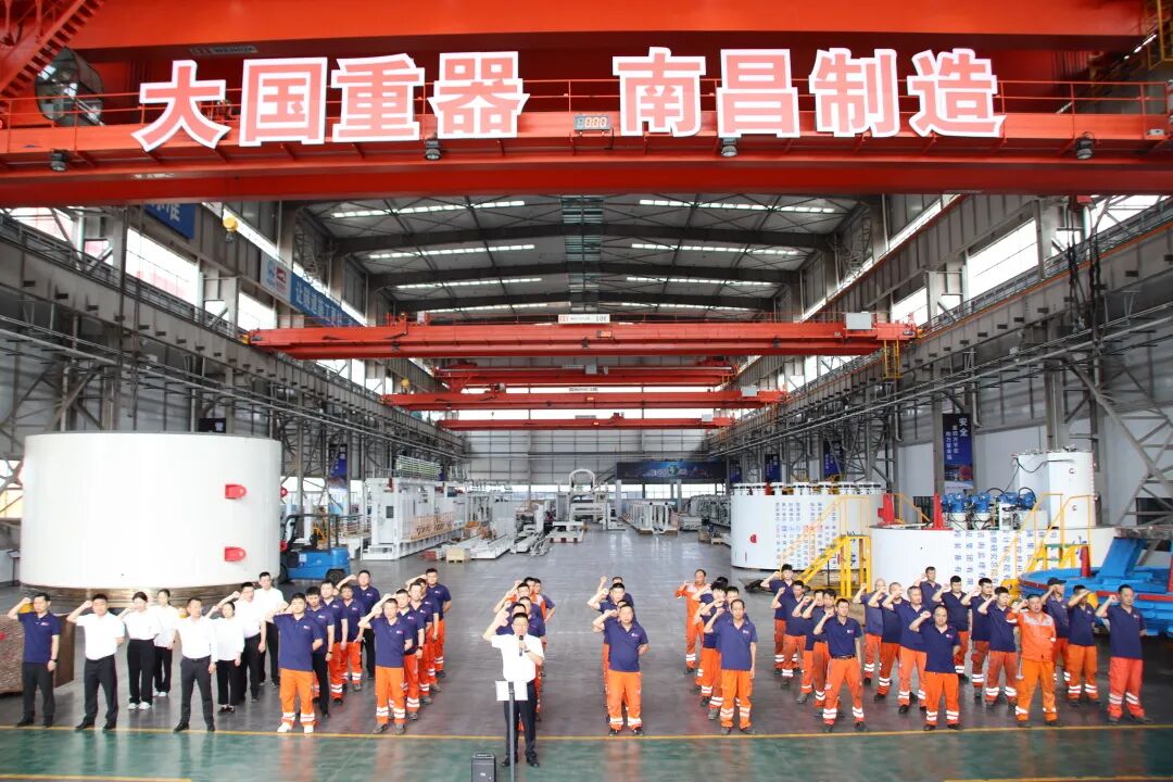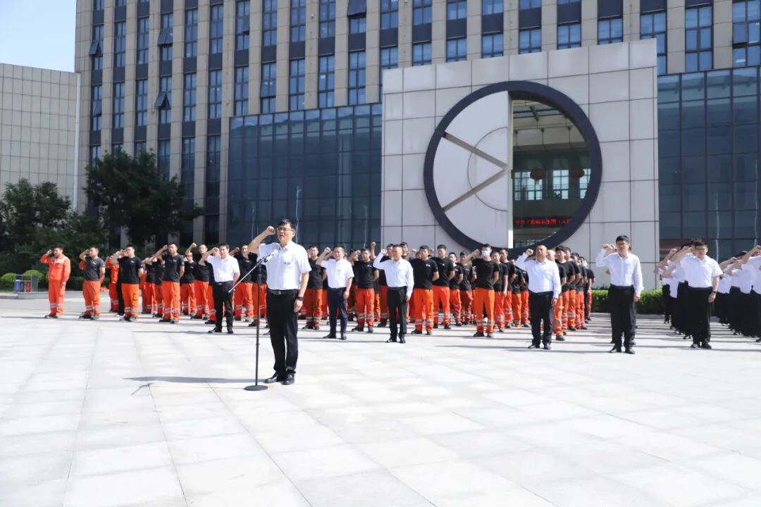 “我是一名中国中铁员工,我工作的安全和质量,关系到企业的发展和荣誉!我郑重承诺:忠诚企业、恪尽职守、珍爱生命、铸造精品!我坚决做到:遵守规章制度、遵守规范规程、遵守劳动纪律,不出事故、不出次品、不留隐患!我将以实际行动,确保企业生产安全、产品优质.......”全体中铁装备人举起右手庄严宣誓。