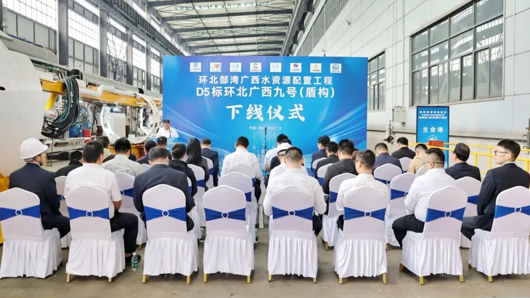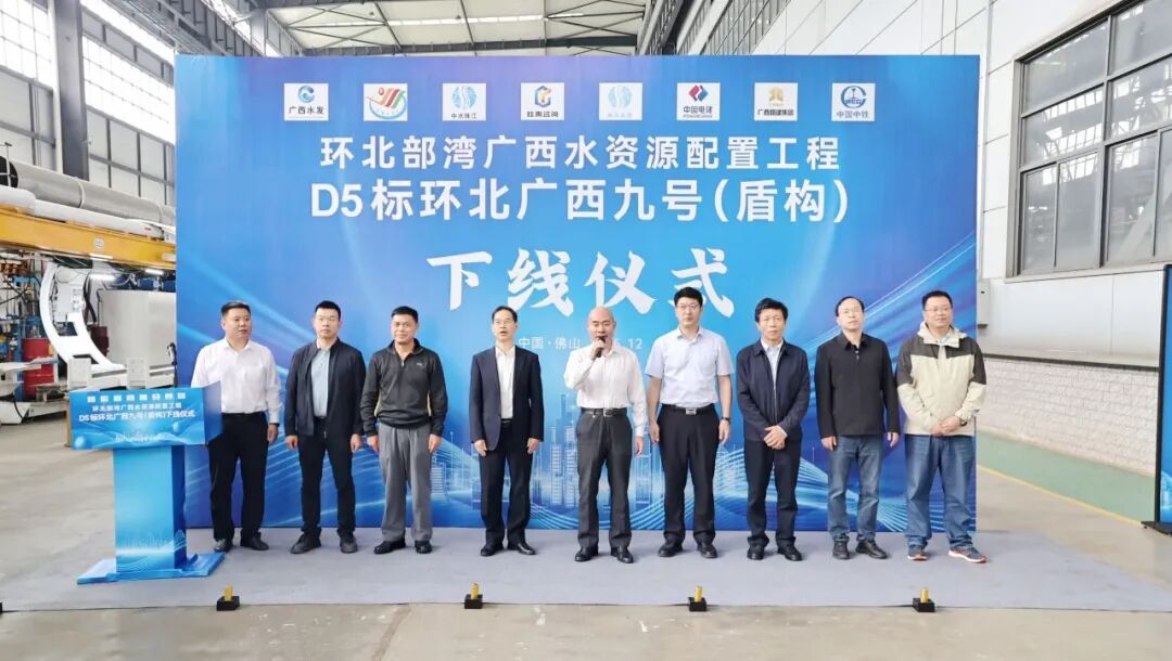 广西水发集团党委副书记、纪委书记、职工董事、工会主席刘春元,党委委员、副总经理甘宏权,广西路建集团副总经理陆宏新,环北部湾广西水资源配置有限公司副总经理梁尚杰,中水珠江规划勘测设计有限公司水利院院长范穗兴,广州新珠工程监理有限公司项目执行总监古浩亮,广西桂禹工程咨询有限公司TBM专业监理工程师黄卫华,中铁装备党委委员、纪委书记顾正国等领导出席下线仪式。